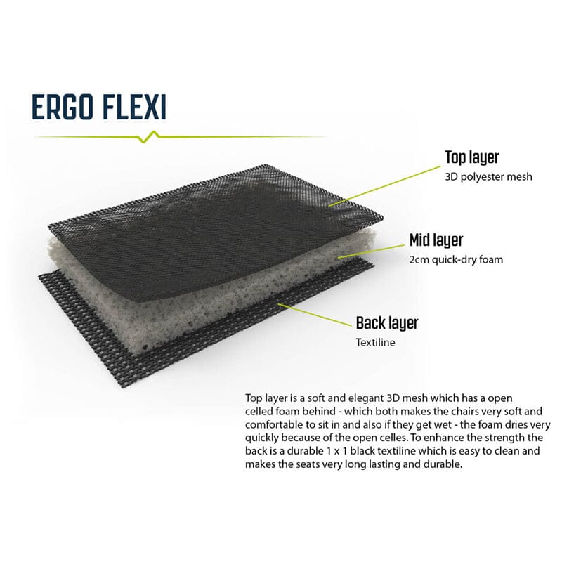- Materiale: 3D polyester mesh med hurtigtørkende skum
