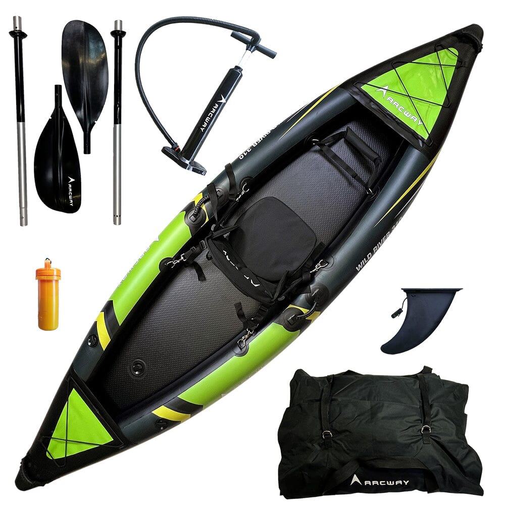 Wild River 310 er en meget anvendelig oppblåsbar kajakk. Den har en solid konstruksjon og en avtagbar finne som gjør kajakken meget stabil. Du blåser Wild River 310 opp på 5 minutter med den medfølgende pumpen og den kommer i en praktisk ryggsekk for enkelt transportering. Selges komplett, med ryggsekk, åre, pumpe, sete og finne. Med vekt på bare 10,7 kg er kajakken enkel å ta med seg på utflukter, både i ferskvann og saltvann.