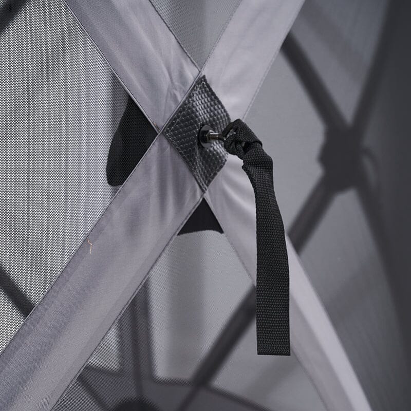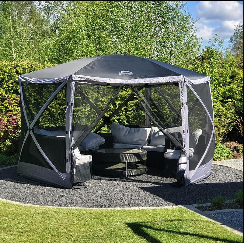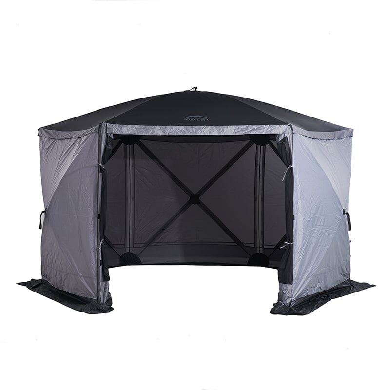 Wild Land Pop-Up Telt 600 er et supert telt som settes opp på 1 minutt! Med sitt seks-kantede design gir det god romslighet for mange personer. Teltet kommer med seks nettingvegger som hindrer insekter og trenge inn, samtidig som det gir god ventilasjon. Du kan raskt montere på separate yttervegger for mer skjerming og privatliv(KJØPES SEPARAT). Vanntett tak med teipede sømmer gjør at teltet står godt i mot regn. En mesh-skjerm av høy kvalitet og et ekstra bredt skjørt bidrar til å holde fluer, mygg og andre insekter ute.