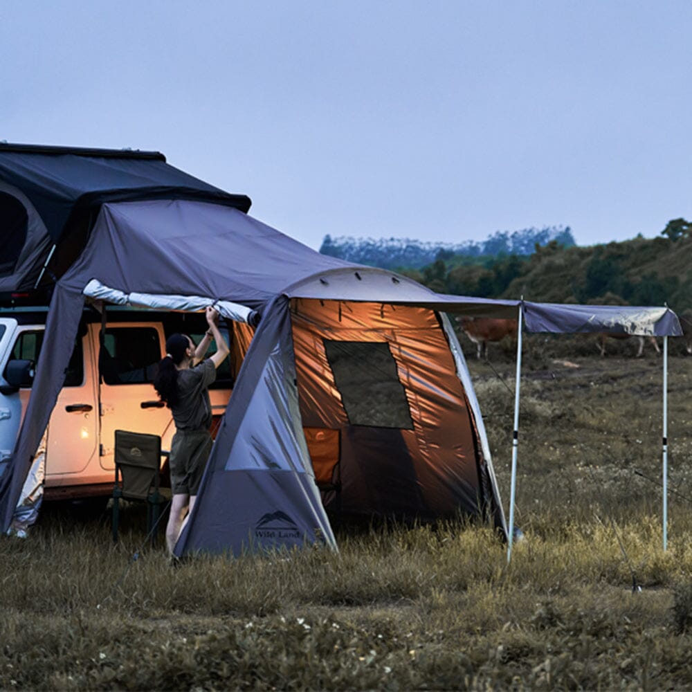 Wild Land Anneks er laget av solid 210D polyoxford og har en god vannsøyle på 3000mm. Dette gjør at du får en trygg plass under krevende værforhold og annekset holder seg godt over mange år. Annekset er også allsidig og passer til de fleste kjøretøy. Det er tre dører som kan åpnes etter ønske, slik at du har muligheten til å anvende annekset på flere måter.