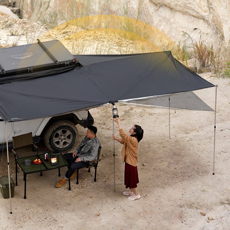 Opplev naturen på et helt nytt nivå med Wild Lands 270-graders markise. Denne robuste og allsidige markisen tilbyr optimal vær- og solbeskyttelse, og passer for alle typer kjøretøy. Perfekt for både korte dagsturer og lange eventyr. Monteres kjapt og enkelt på noen minutter! Wild Land Oasis 270 er konstruert på en smart måte slik at vann effektiv renner av. I tillegg tilbyr Oasis 270 sterk beskyttelse mot skadelig UV-stråling og forsterkede store hengsler og robuste rammer gjør at markisen tåler et tøft klima.