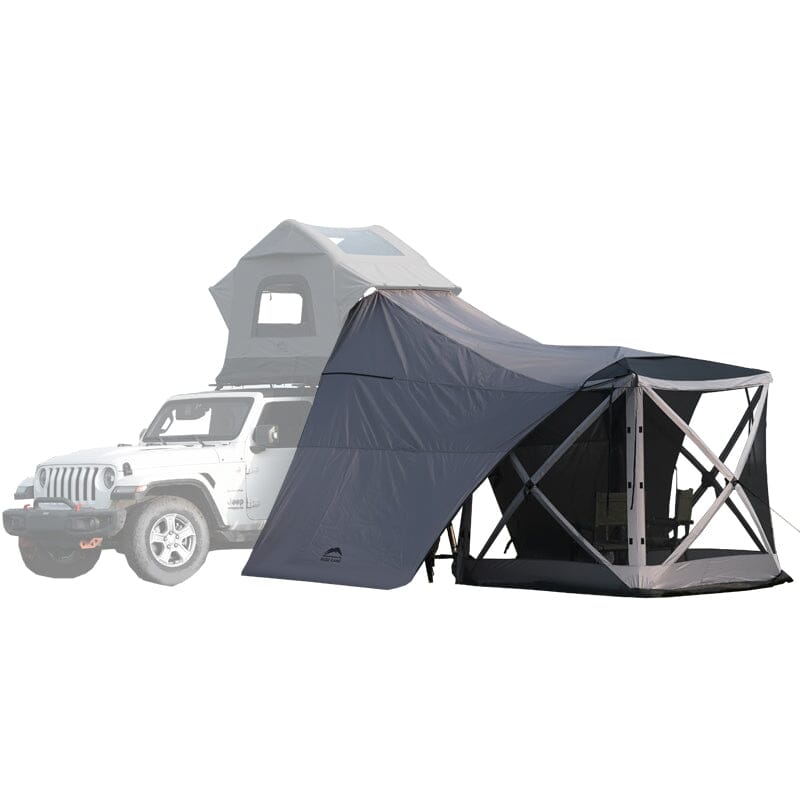 Wild Land Universal Connector er en allsidig og praktisk løsning som gir opptil 16m² skyggeområde. Den passer perfekt til flere taktelt og til Pop-Up Teltene Hub Screen House 400 og 600, men kan også brukes frittstående. Universal Connector har 3 ulike moduser: stengte vegger for privat og lukket modus, full åpning for mest mulig skyggeområde når solen skinner, eller én vegg lukket for å skape le for vinden. Perfekt for piknik og god plass til bord med stoler.