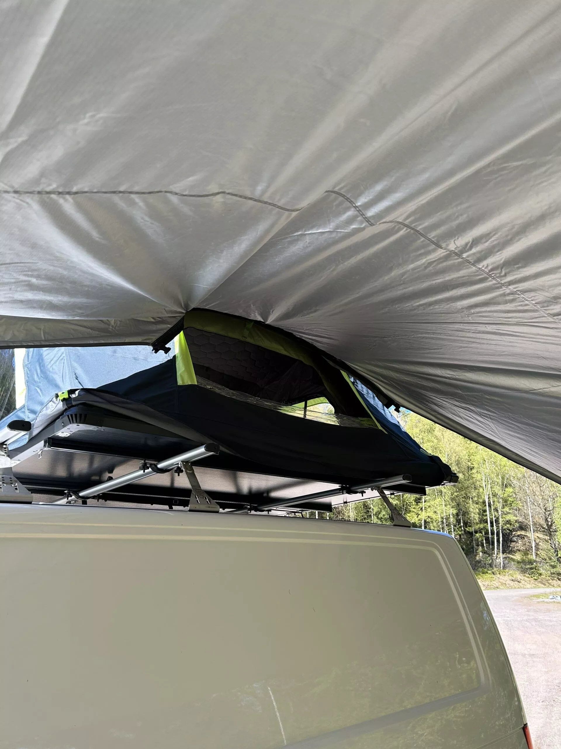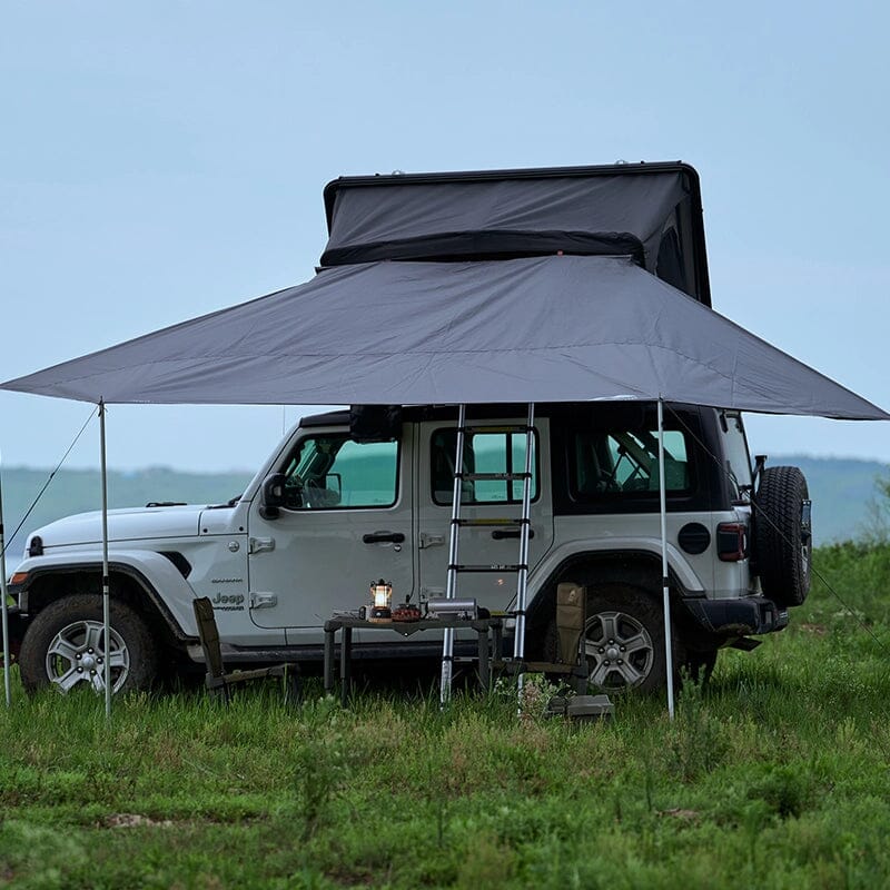 Wild Land Universal Tarp er designet for å gi god beskyttelse mot regn og sol, og passer til alle taktelt fra Wild Land. Den kan også brukes separat eller du kan feste den til kjøretøyet ditt. Passer perfekt for et bord og noen campingstoler.
